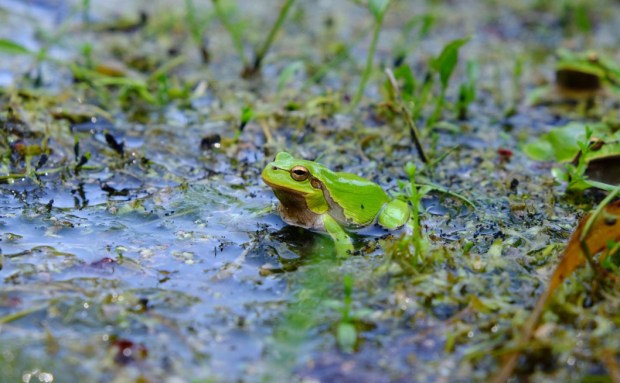An Eastern treefrog (Hyla orientalis) showing normal green coloration used to assess impacts of Chernobyl’s radiation (Germán Orizaola)